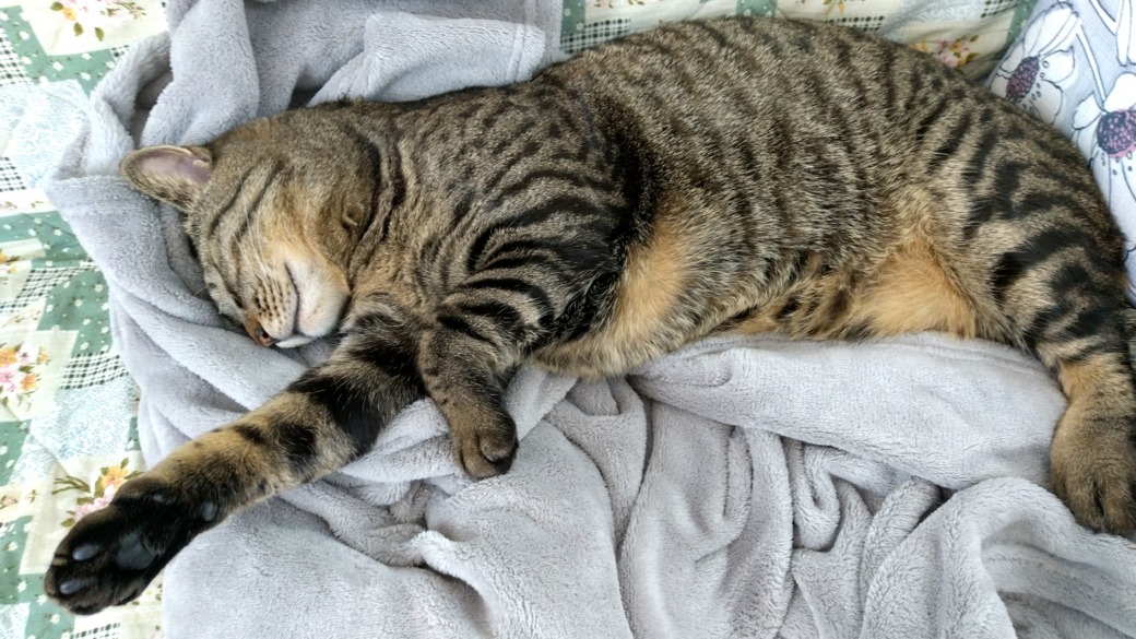 捨てられたようで、わが家の玄関で待つようになり保護しましたが、一匹の先住猫と相性が悪く、別室に隔離しています。当初は寂しくて声がかすれるくらい鳴いていましたが、誰も居ないと大人しく寝て過ごしています(ヒトの気配がするとアピールして一生懸命に鳴き始めます)。