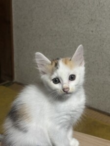 とみますの畑の中で保護しました。体全体はミケ猫で…